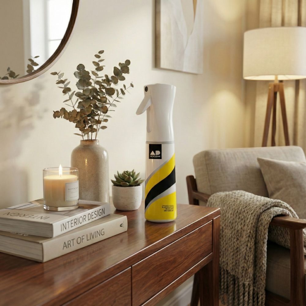 Su formato de 300 ML con gatillo nebulizador continuo permite una aplicación rápida, pareja y precisa. Elimina malos olores y mejora la estética de tu hogar en un solo paso.